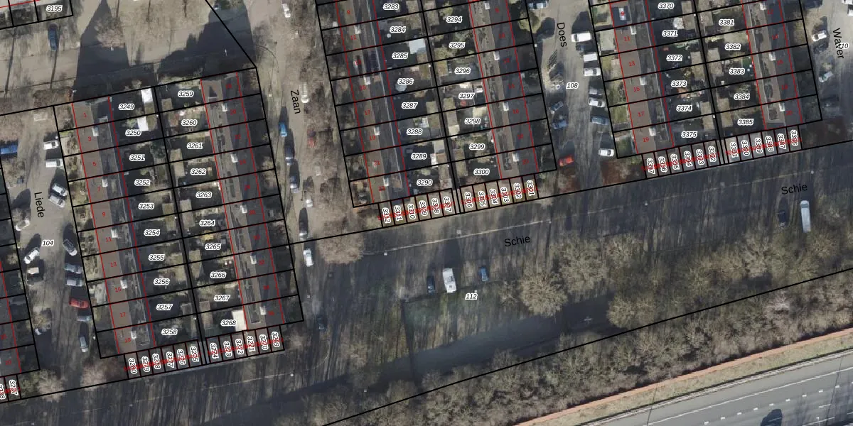 Gebruik de zoekbalk of klik op een perceel voor informatie over de adressen binnen dit perceel.