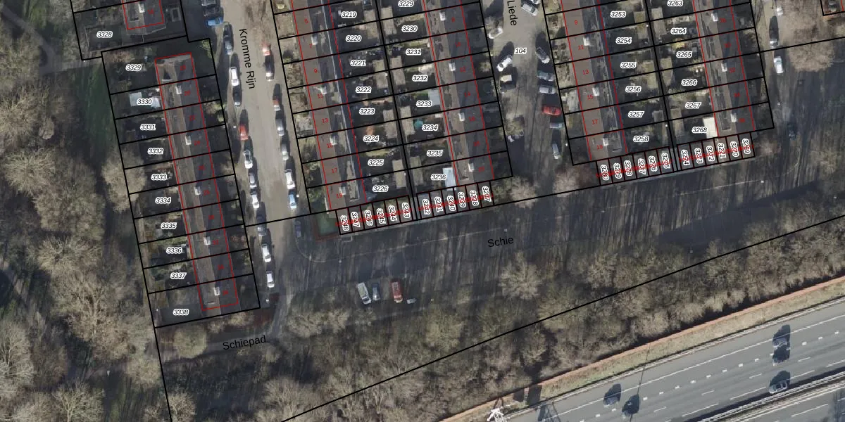 Gebruik de zoekbalk of klik op een perceel voor informatie over de adressen binnen dit perceel.