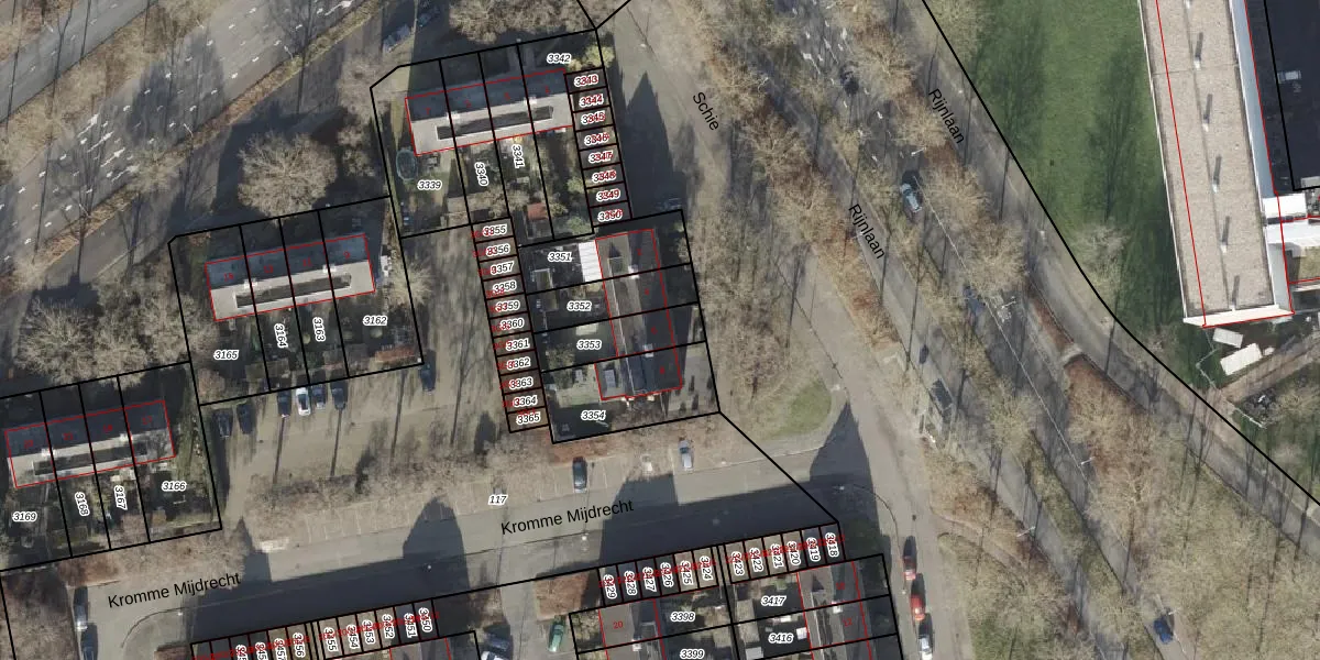 Gebruik de zoekbalk of klik op een perceel voor informatie over de adressen binnen dit perceel.