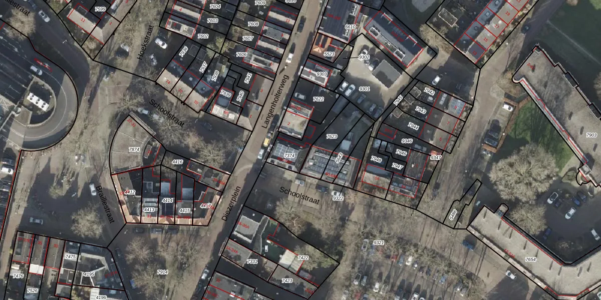 Het perceel waarop Schoolstraat 66-D staat heeft een oppervlakte van 199 m². Dit is een middelgroot perceel. De perceeloppervlakte wordt geregistreerd door het Kadaster. Gedetailleerde informatie over de maten van dit perceel kunt u vinden in het rapport Kadastrale kaart met maatvoering van Schoolstraat 66-D.