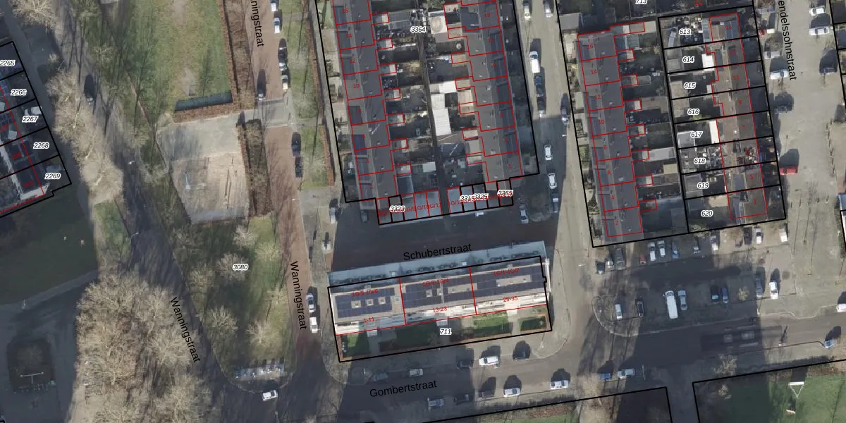 Het perceel waarop Schubertstraat 1-G-10 staat heeft een oppervlakte van 3756 m². Dit is een zeer groot perceel. De perceeloppervlakte wordt geregistreerd door het Kadaster. Gedetailleerde informatie over de maten van dit perceel kunt u vinden in het rapport Kadastrale kaart met maatvoering van Schubertstraat 1-G-10.