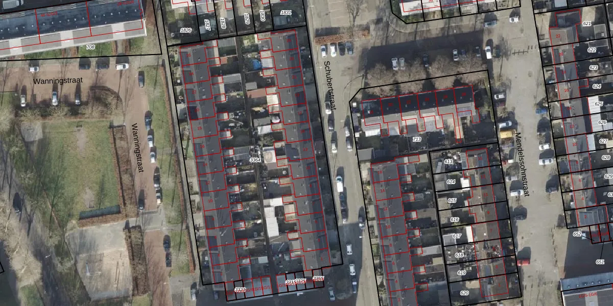 Het perceel waarop Schubertstraat 13 staat heeft een oppervlakte van 3756 m². Dit is een zeer groot perceel. De perceeloppervlakte wordt geregistreerd door het Kadaster. Gedetailleerde informatie over de maten van dit perceel kunt u vinden in het rapport Kadastrale kaart met maatvoering van Schubertstraat 13.