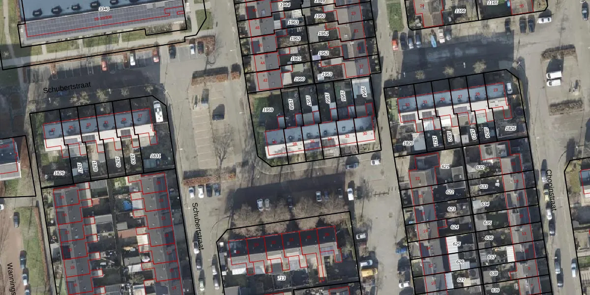 Het perceel waarop Schubertstraat 38 staat heeft een oppervlakte van 152 m². Dit is een middelgroot perceel. De perceeloppervlakte wordt geregistreerd door het Kadaster. Gedetailleerde informatie over de maten van dit perceel kunt u vinden in het rapport Kadastrale kaart met maatvoering van Schubertstraat 38.