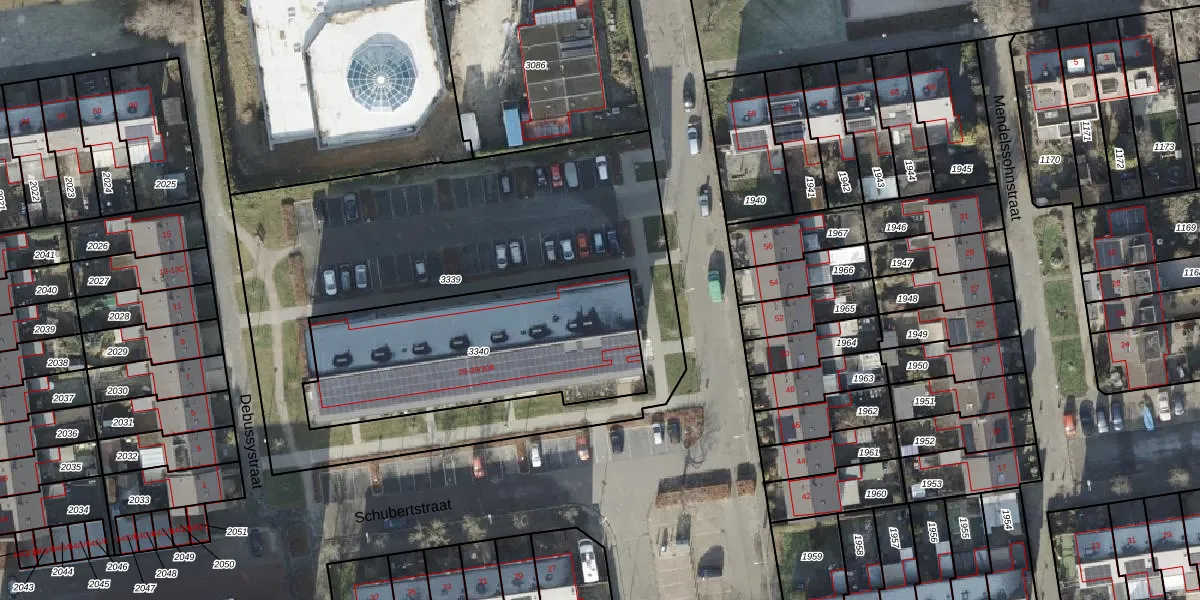 Het perceel waarop Schubertstraat 39-202 staat heeft een oppervlakte van 1057 m². Dit is een zeer groot perceel. De perceeloppervlakte wordt geregistreerd door het Kadaster. Gedetailleerde informatie over de maten van dit perceel kunt u vinden in het rapport Kadastrale kaart met maatvoering van Schubertstraat 39-202.
