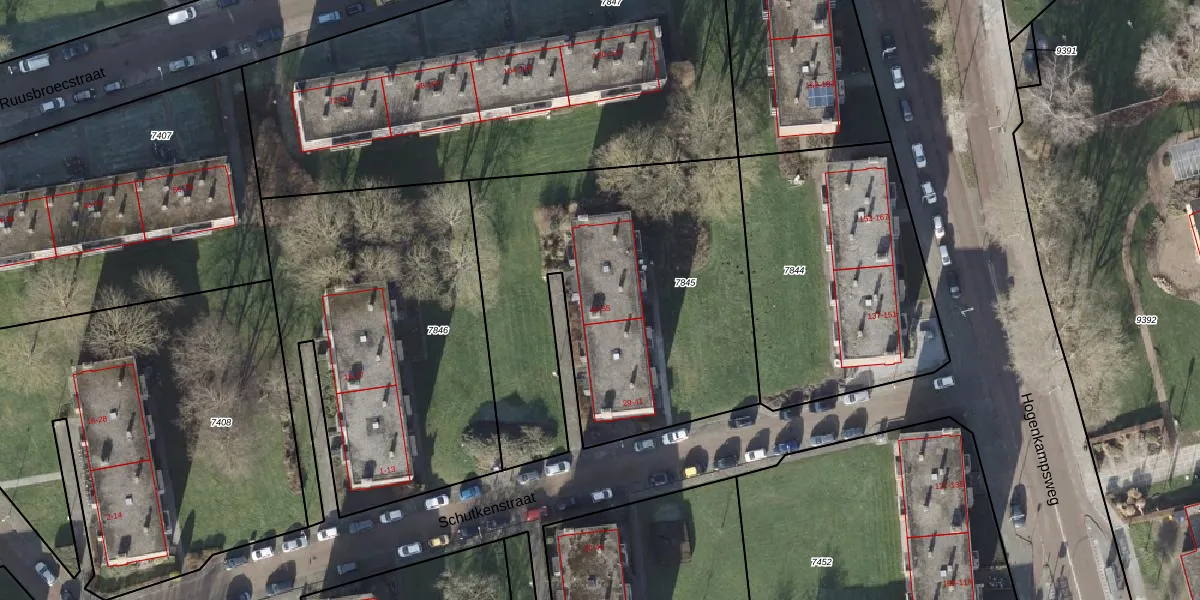 Het perceel waarop Schutkenstraat 45 staat heeft een oppervlakte van 1916 m². Dit is een zeer groot perceel. De perceeloppervlakte wordt geregistreerd door het Kadaster. Gedetailleerde informatie over de maten van dit perceel kunt u vinden in het rapport Kadastrale kaart met maatvoering van Schutkenstraat 45.