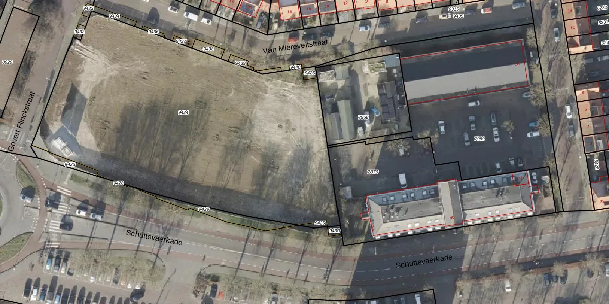 Het perceel waarop Schuttevaerkade 92 staat heeft een oppervlakte van 4490 m². Dit is een zeer groot perceel. De perceeloppervlakte wordt geregistreerd door het Kadaster. Gedetailleerde informatie over de maten van dit perceel kunt u vinden in het rapport Kadastrale kaart met maatvoering van Schuttevaerkade 92.