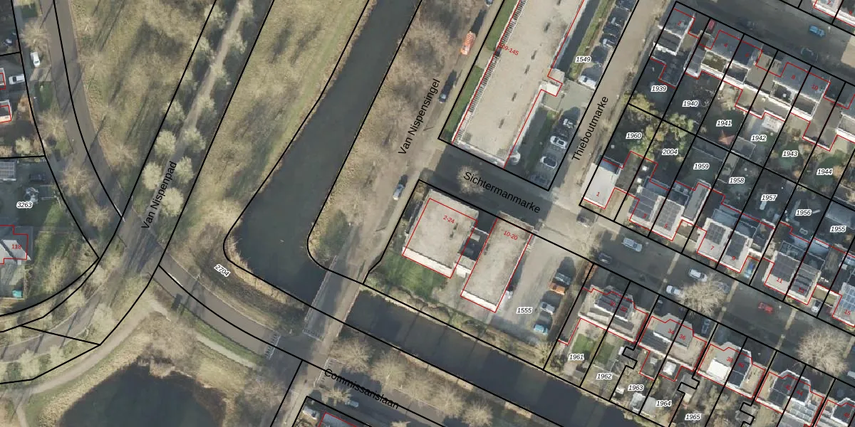 Het perceel waarop Sichtermanmarke 2 staat heeft een oppervlakte van 1267 m². Dit is een zeer groot perceel. De perceeloppervlakte wordt geregistreerd door het Kadaster. Gedetailleerde informatie over de maten van dit perceel kunt u vinden in het rapport Kadastrale kaart met maatvoering van Sichtermanmarke 2.