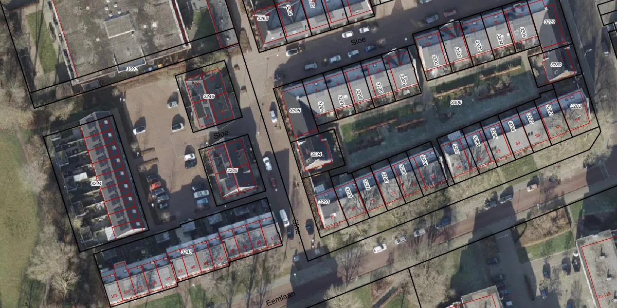 Gebruik de zoekbalk of klik op een perceel voor informatie over de adressen binnen dit perceel.