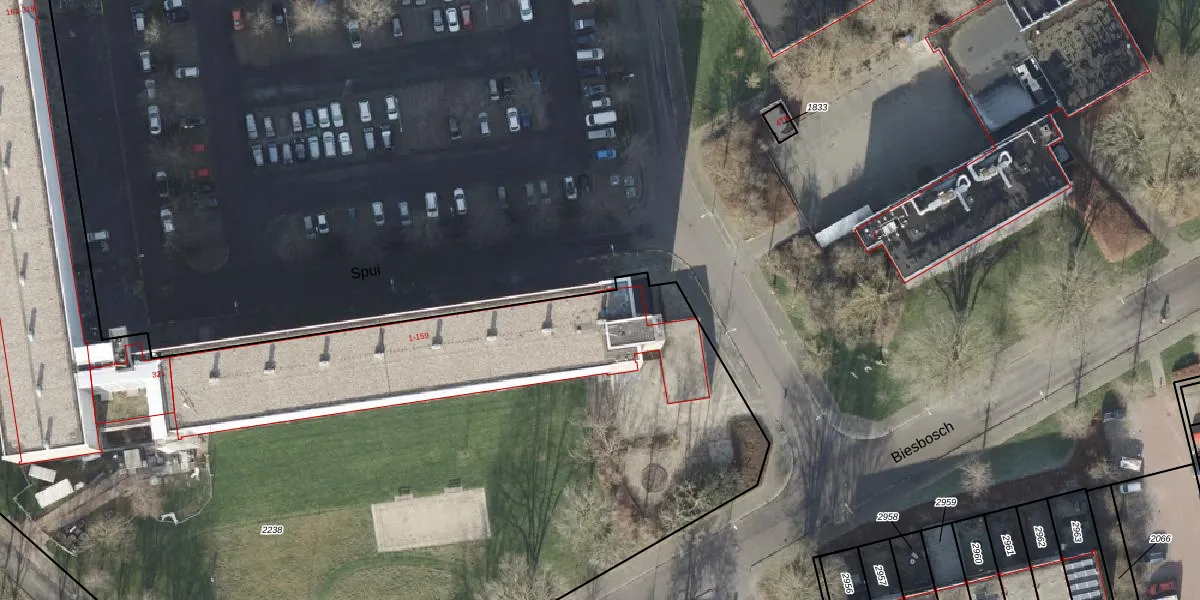 Het perceel waarop Spui 1 staat heeft een oppervlakte van 9783 m². Dit is een zeer groot perceel. De perceeloppervlakte wordt geregistreerd door het Kadaster. Gedetailleerde informatie over de maten van dit perceel kunt u vinden in het rapport Kadastrale kaart met maatvoering van Spui 1.