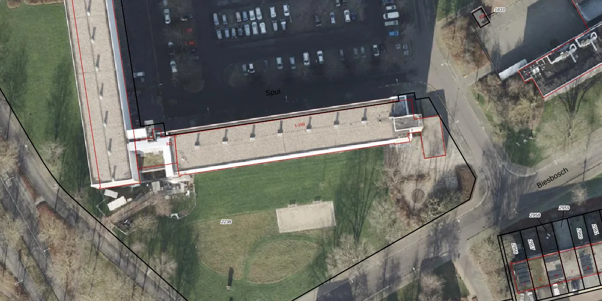 Het perceel waarop Spui 119 staat heeft een oppervlakte van 9783 m². Dit is een zeer groot perceel. De perceeloppervlakte wordt geregistreerd door het Kadaster. Gedetailleerde informatie over de maten van dit perceel kunt u vinden in het rapport Kadastrale kaart met maatvoering van Spui 119.