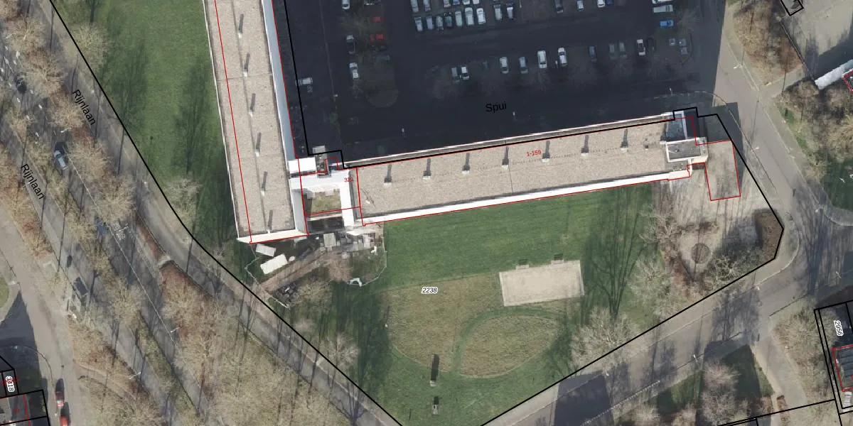 Het perceel waarop Spui 157 staat heeft een oppervlakte van 9783 m². Dit is een zeer groot perceel. De perceeloppervlakte wordt geregistreerd door het Kadaster. Gedetailleerde informatie over de maten van dit perceel kunt u vinden in het rapport Kadastrale kaart met maatvoering van Spui 157.