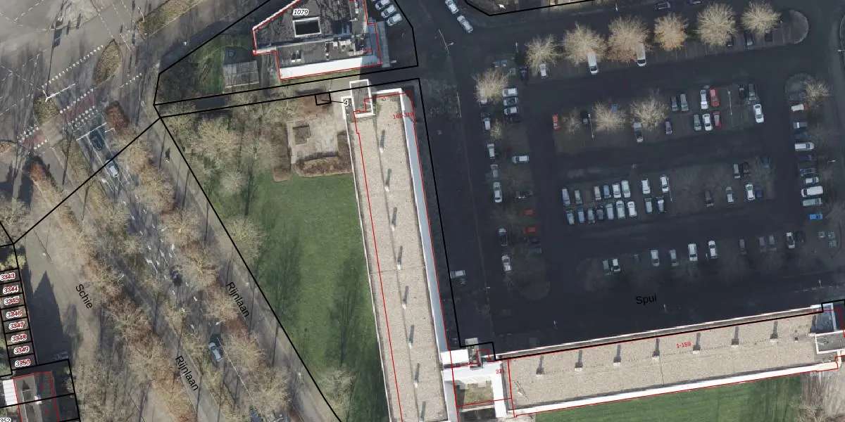 Het perceel waarop Spui 165 staat heeft een oppervlakte van 9783 m². Dit is een zeer groot perceel. De perceeloppervlakte wordt geregistreerd door het Kadaster. Gedetailleerde informatie over de maten van dit perceel kunt u vinden in het rapport Kadastrale kaart met maatvoering van Spui 165.