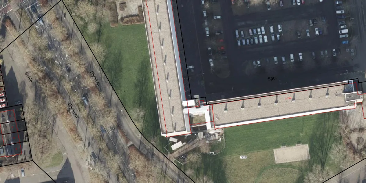 Het perceel waarop Spui 171 staat heeft een oppervlakte van 9783 m². Dit is een zeer groot perceel. De perceeloppervlakte wordt geregistreerd door het Kadaster. Gedetailleerde informatie over de maten van dit perceel kunt u vinden in het rapport Kadastrale kaart met maatvoering van Spui 171.