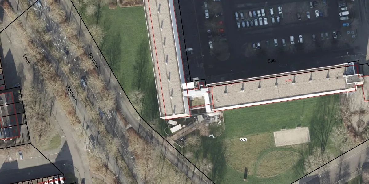 Het perceel waarop Spui 173 staat heeft een oppervlakte van 9783 m². Dit is een zeer groot perceel. De perceeloppervlakte wordt geregistreerd door het Kadaster. Gedetailleerde informatie over de maten van dit perceel kunt u vinden in het rapport Kadastrale kaart met maatvoering van Spui 173.