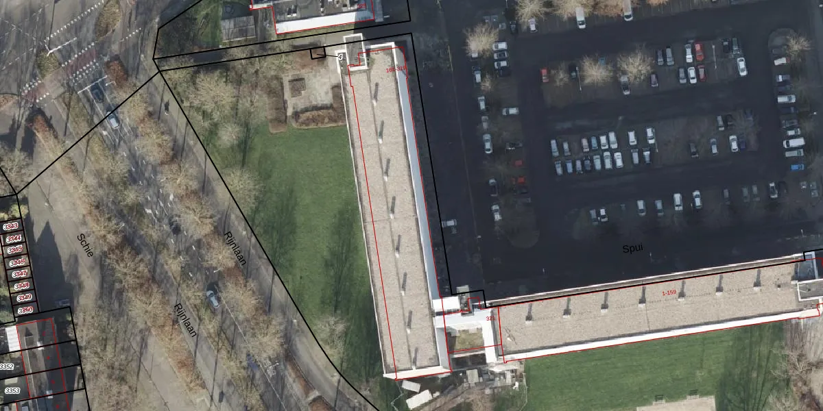 Het perceel waarop Spui 199 staat heeft een oppervlakte van 9783 m². Dit is een zeer groot perceel. De perceeloppervlakte wordt geregistreerd door het Kadaster. Gedetailleerde informatie over de maten van dit perceel kunt u vinden in het rapport Kadastrale kaart met maatvoering van Spui 199.