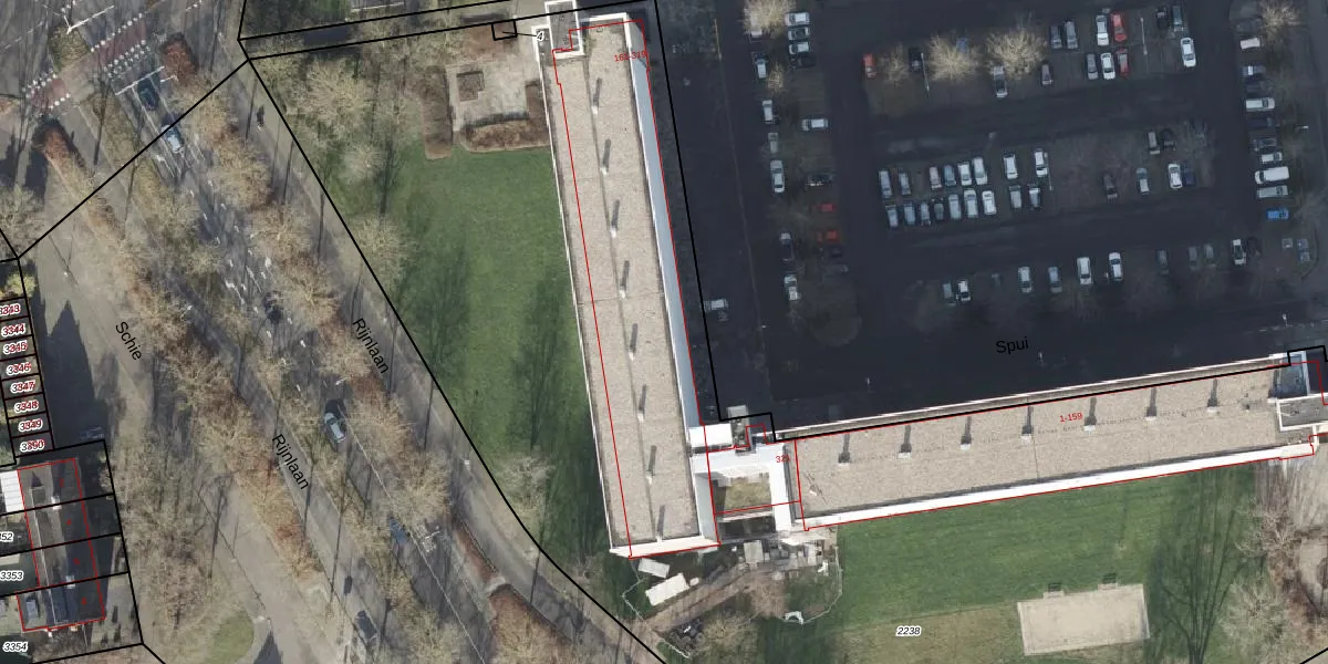 Het perceel waarop Spui 201 staat heeft een oppervlakte van 9783 m². Dit is een zeer groot perceel. De perceeloppervlakte wordt geregistreerd door het Kadaster. Gedetailleerde informatie over de maten van dit perceel kunt u vinden in het rapport Kadastrale kaart met maatvoering van Spui 201.