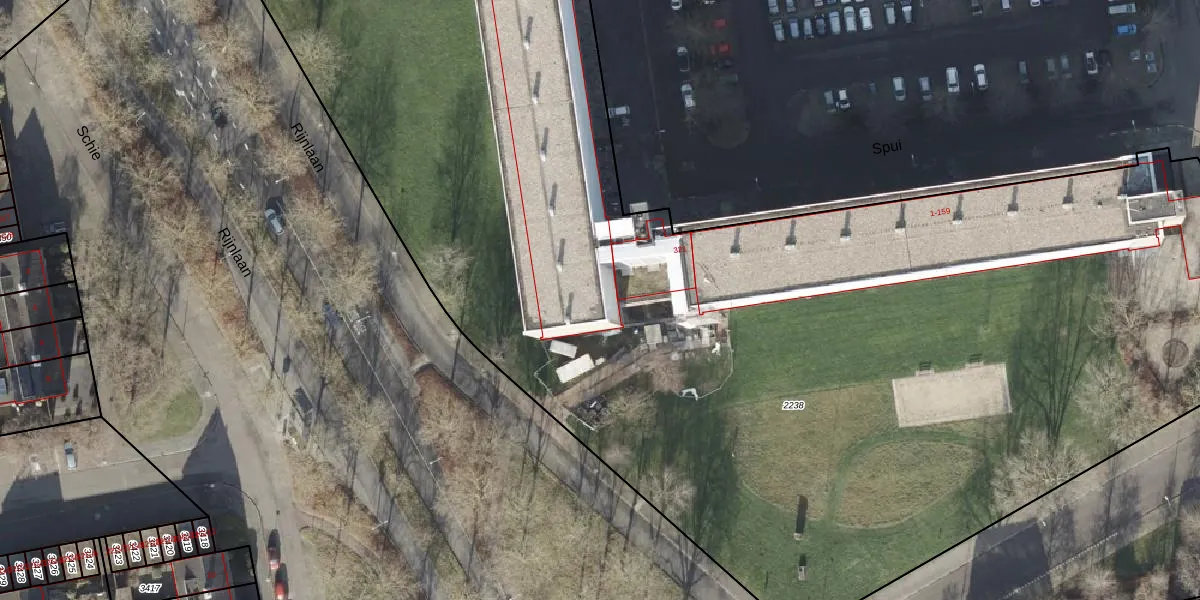 Het perceel waarop Spui 207 staat heeft een oppervlakte van 9783 m². Dit is een zeer groot perceel. De perceeloppervlakte wordt geregistreerd door het Kadaster. Gedetailleerde informatie over de maten van dit perceel kunt u vinden in het rapport Kadastrale kaart met maatvoering van Spui 207.
