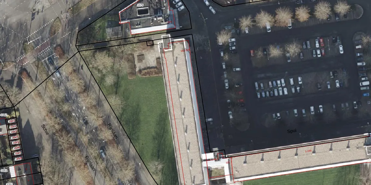 Het perceel waarop Spui 229 staat heeft een oppervlakte van 9783 m². Dit is een zeer groot perceel. De perceeloppervlakte wordt geregistreerd door het Kadaster. Gedetailleerde informatie over de maten van dit perceel kunt u vinden in het rapport Kadastrale kaart met maatvoering van Spui 229.