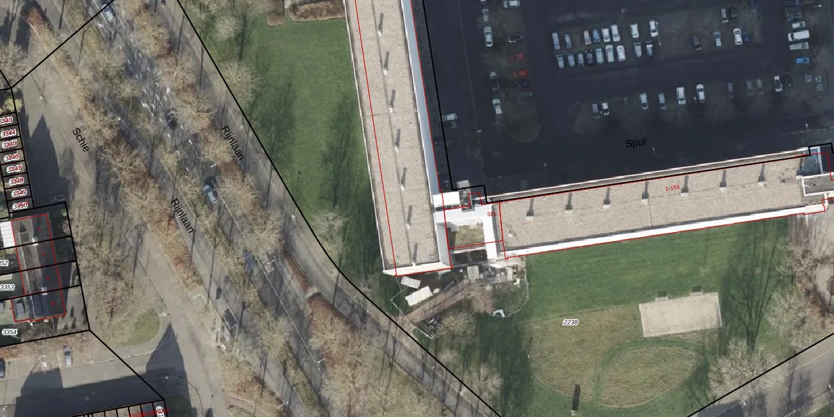 Het perceel waarop Spui 253 staat heeft een oppervlakte van 9783 m². Dit is een zeer groot perceel. De perceeloppervlakte wordt geregistreerd door het Kadaster. Gedetailleerde informatie over de maten van dit perceel kunt u vinden in het rapport Kadastrale kaart met maatvoering van Spui 253.