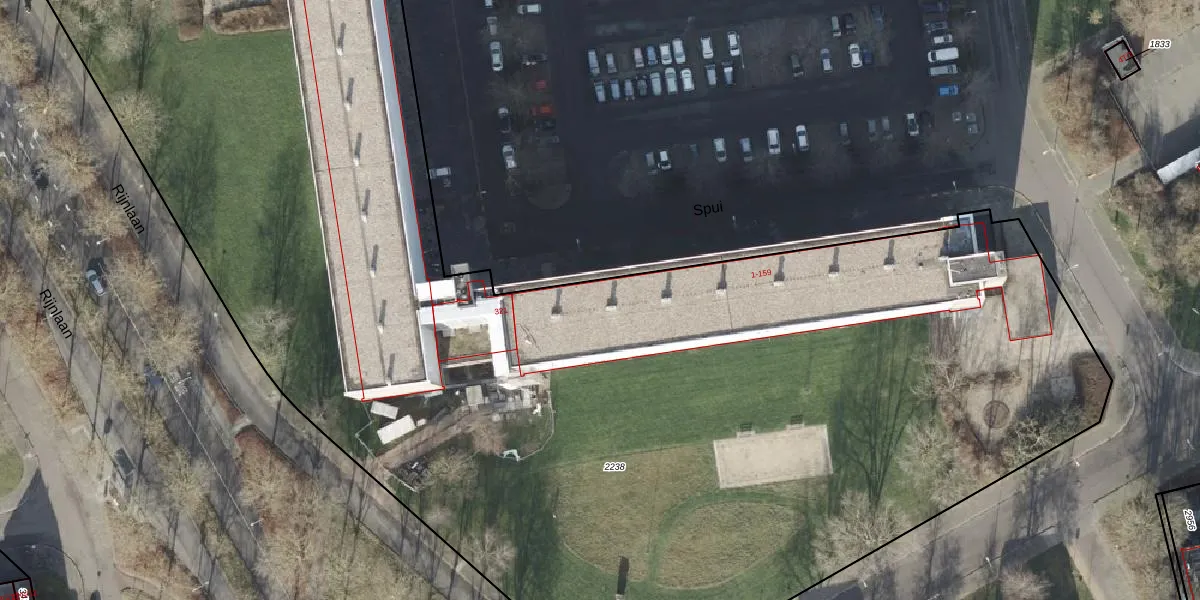 Het perceel waarop Spui 29 staat heeft een oppervlakte van 9783 m². Dit is een zeer groot perceel. De perceeloppervlakte wordt geregistreerd door het Kadaster. Gedetailleerde informatie over de maten van dit perceel kunt u vinden in het rapport Kadastrale kaart met maatvoering van Spui 29.