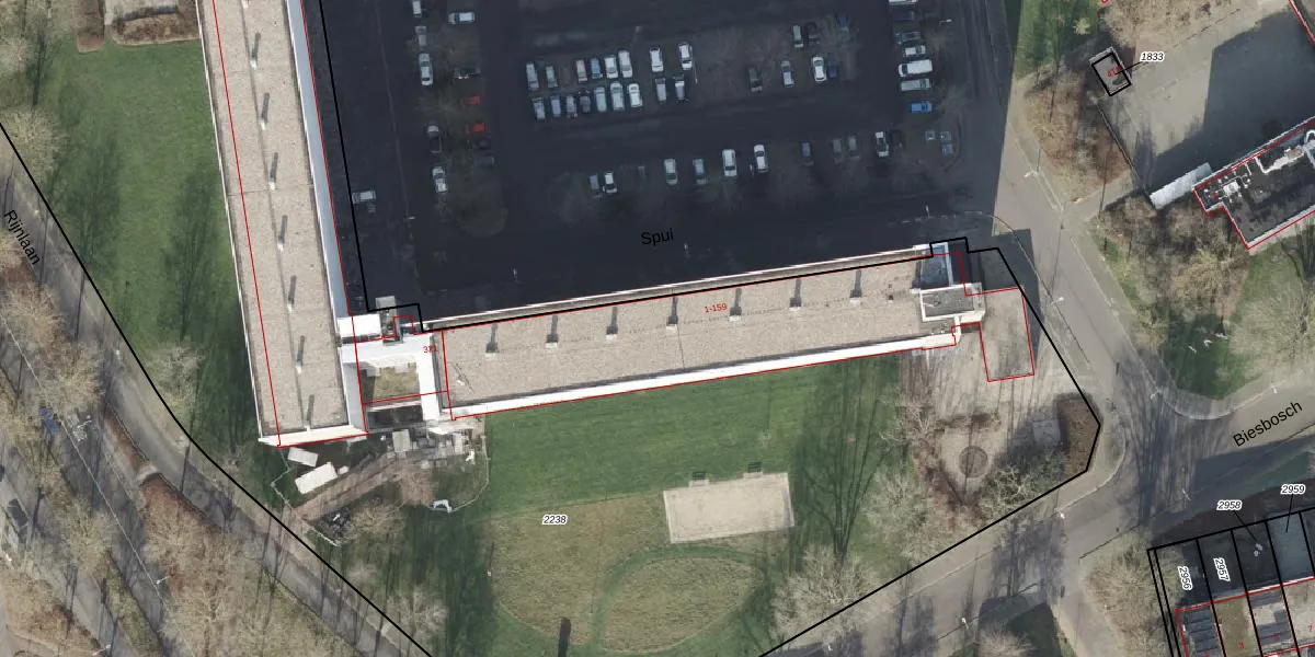 Het perceel waarop Spui 41 staat heeft een oppervlakte van 9783 m². Dit is een zeer groot perceel. De perceeloppervlakte wordt geregistreerd door het Kadaster. Gedetailleerde informatie over de maten van dit perceel kunt u vinden in het rapport Kadastrale kaart met maatvoering van Spui 41.