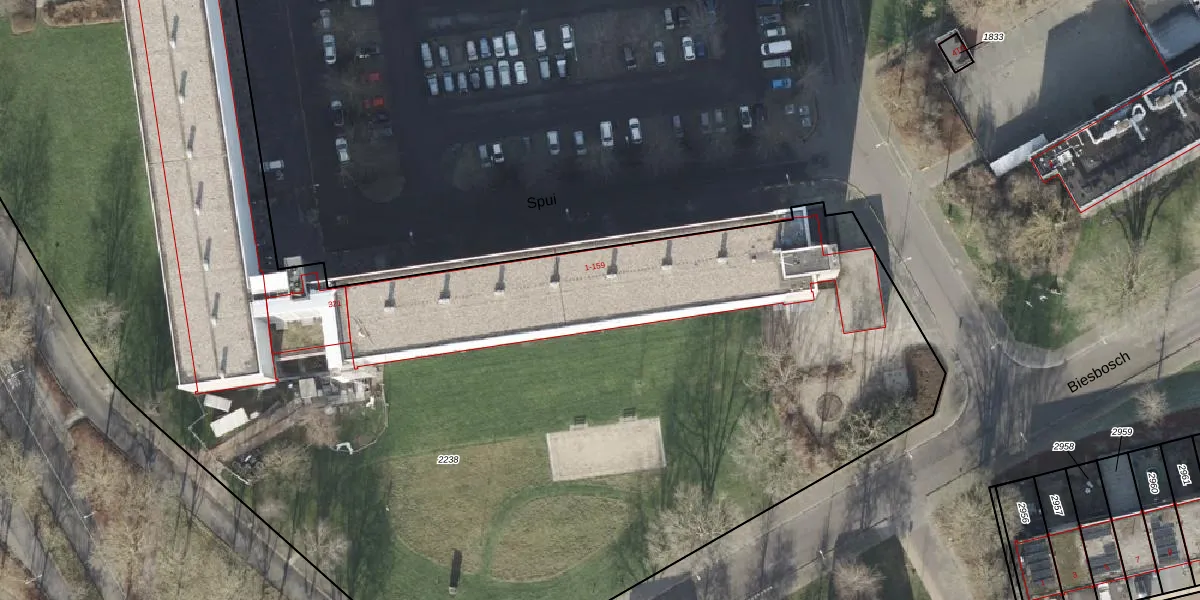 Het perceel waarop Spui 87 staat heeft een oppervlakte van 9783 m². Dit is een zeer groot perceel. De perceeloppervlakte wordt geregistreerd door het Kadaster. Gedetailleerde informatie over de maten van dit perceel kunt u vinden in het rapport Kadastrale kaart met maatvoering van Spui 87.