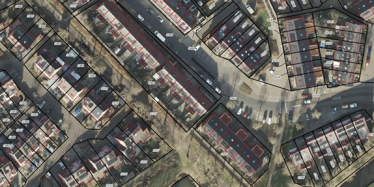Staatsmanlaan 91 is gelegen op kadastraal perceel ZLE00L5964. Deze kadastrale aanduiding is uniek en wordt gebruikt door het Kadaster om eigendomsrechten en andere zakelijke rechten vast te leggen. Het perceel maakt onderdeel uit van de kadastrale gemeente Zwolle.