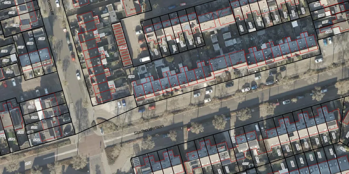 Het perceel waarop Stadhouderlaan 38 staat heeft een oppervlakte van 6622 m². Dit is een zeer groot perceel. De perceeloppervlakte wordt geregistreerd door het Kadaster. Gedetailleerde informatie over de maten van dit perceel kunt u vinden in het rapport Kadastrale kaart met maatvoering van Stadhouderlaan 38.