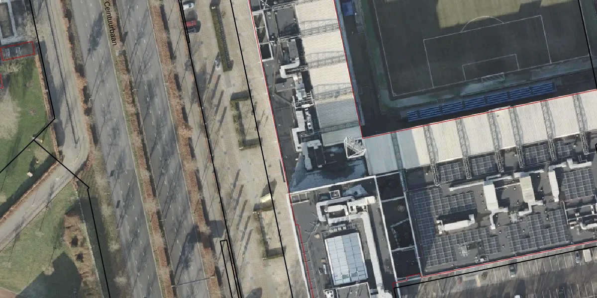 Het perceel waarop Stadionplein 22 staat heeft een oppervlakte van 2,2 ha. Dit is een zeer groot perceel. De perceeloppervlakte wordt geregistreerd door het Kadaster. Gedetailleerde informatie over de maten van dit perceel kunt u vinden in het rapport Kadastrale kaart met maatvoering van Stadionplein 22.