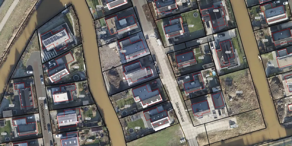 Het perceel waarop Staringstraat 7 staat heeft een oppervlakte van 615 m². Dit is een groot perceel. De perceeloppervlakte wordt geregistreerd door het Kadaster. Gedetailleerde informatie over de maten van dit perceel kunt u vinden in het rapport Kadastrale kaart met maatvoering van Staringstraat 7.