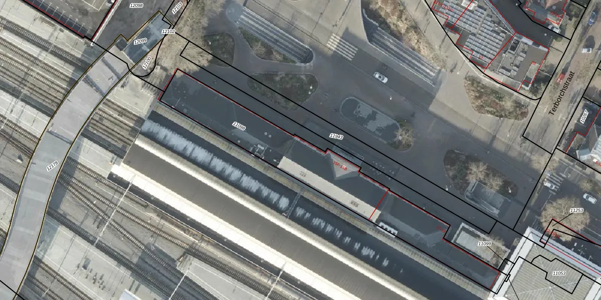 Het perceel waarop Stationsplein 16-B staat heeft een oppervlakte van 1482 m². Dit is een zeer groot perceel. De perceeloppervlakte wordt geregistreerd door het Kadaster. Gedetailleerde informatie over de maten van dit perceel kunt u vinden in het rapport Kadastrale kaart met maatvoering van Stationsplein 16-B.