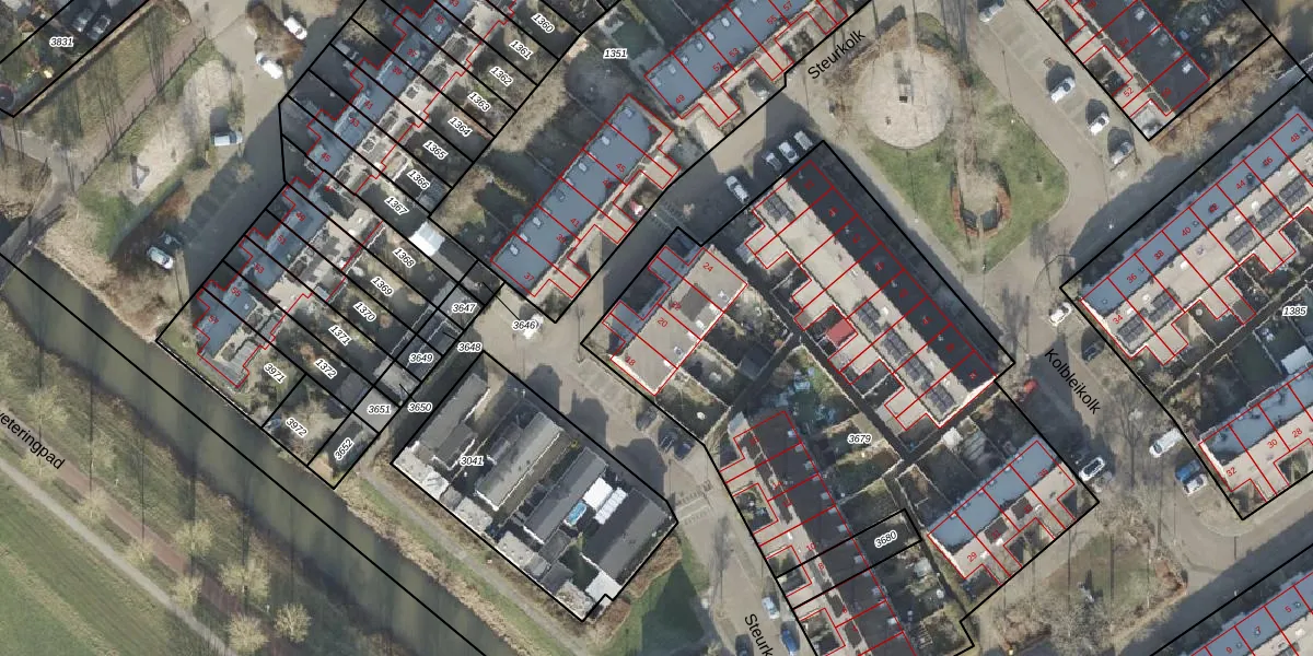 Het perceel waarop Steurkolk 20 staat heeft een oppervlakte van 3205 m². Dit is een zeer groot perceel. De perceeloppervlakte wordt geregistreerd door het Kadaster. Gedetailleerde informatie over de maten van dit perceel kunt u vinden in het rapport Kadastrale kaart met maatvoering van Steurkolk 20.