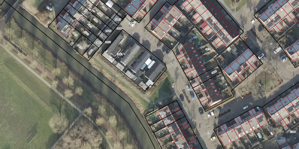 Het perceel waarop Steurkolk 29 staat heeft een oppervlakte van 870 m². Dit is een groot perceel. De perceeloppervlakte wordt geregistreerd door het Kadaster. Gedetailleerde informatie over de maten van dit perceel kunt u vinden in het rapport Kadastrale kaart met maatvoering van Steurkolk 29.
