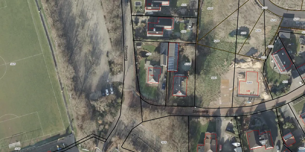 Het perceel waarop Stinsweg 14-A staat heeft een oppervlakte van 796 m². Dit is een groot perceel. De perceeloppervlakte wordt geregistreerd door het Kadaster. Gedetailleerde informatie over de maten van dit perceel kunt u vinden in het rapport Kadastrale kaart met maatvoering van Stinsweg 14-A.