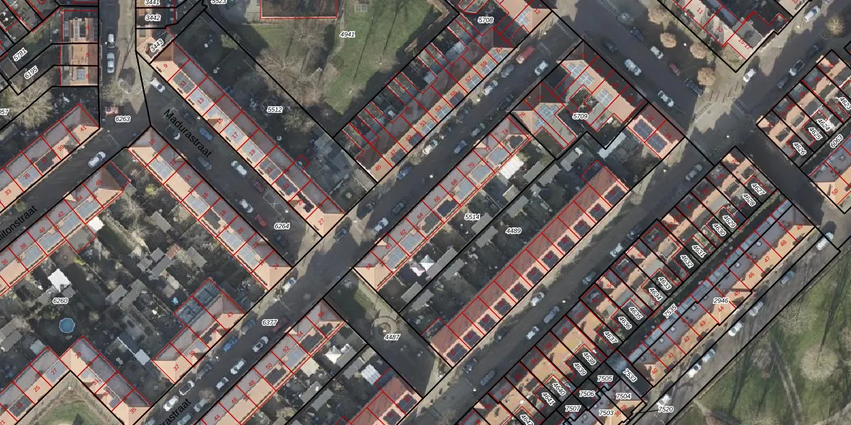 Het perceel waarop Sumatrastraat 64 staat heeft een oppervlakte van 775 m². Dit is een groot perceel. De perceeloppervlakte wordt geregistreerd door het Kadaster. Gedetailleerde informatie over de maten van dit perceel kunt u vinden in het rapport Kadastrale kaart met maatvoering van Sumatrastraat 64.