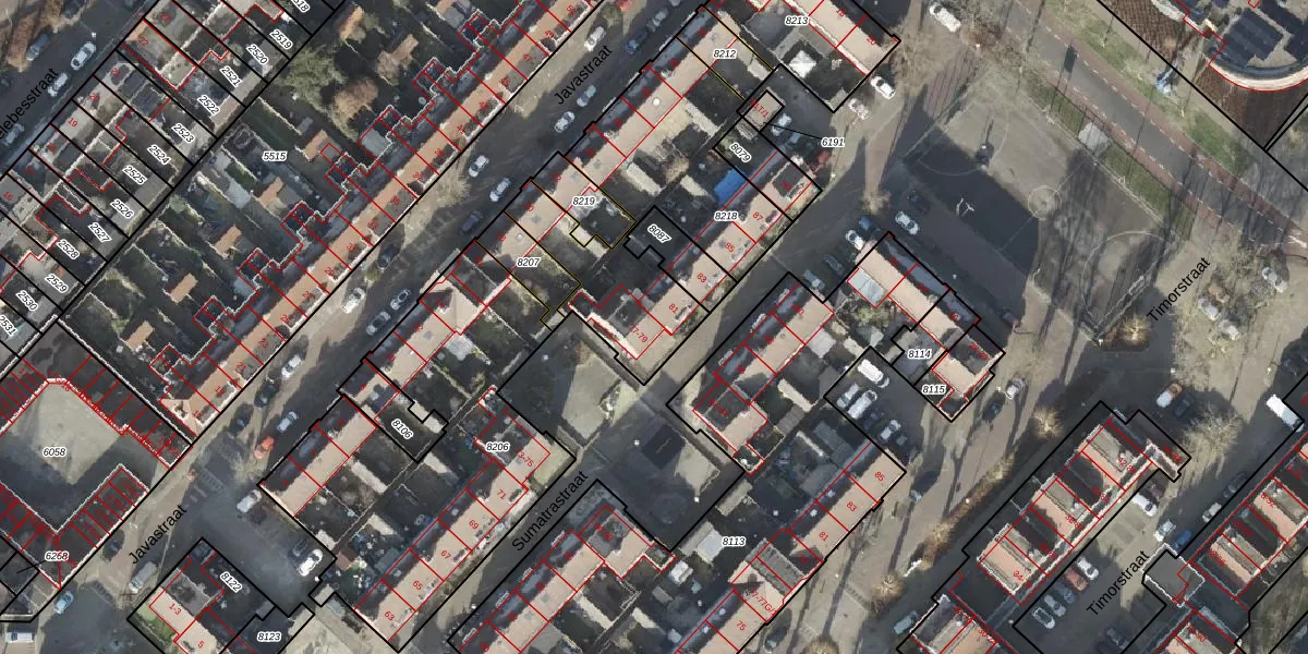 Het perceel waarop Sumatrastraat 79 staat heeft een oppervlakte van 960 m². Dit is een groot perceel. De perceeloppervlakte wordt geregistreerd door het Kadaster. Gedetailleerde informatie over de maten van dit perceel kunt u vinden in het rapport Kadastrale kaart met maatvoering van Sumatrastraat 79.