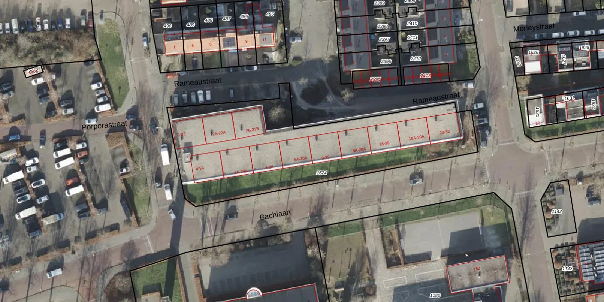 Het perceel waarop Telemannstraat 14-A staat heeft een oppervlakte van 2368 m². Dit is een zeer groot perceel. De perceeloppervlakte wordt geregistreerd door het Kadaster. Gedetailleerde informatie over de maten van dit perceel kunt u vinden in het rapport Kadastrale kaart met maatvoering van Telemannstraat 14-A.