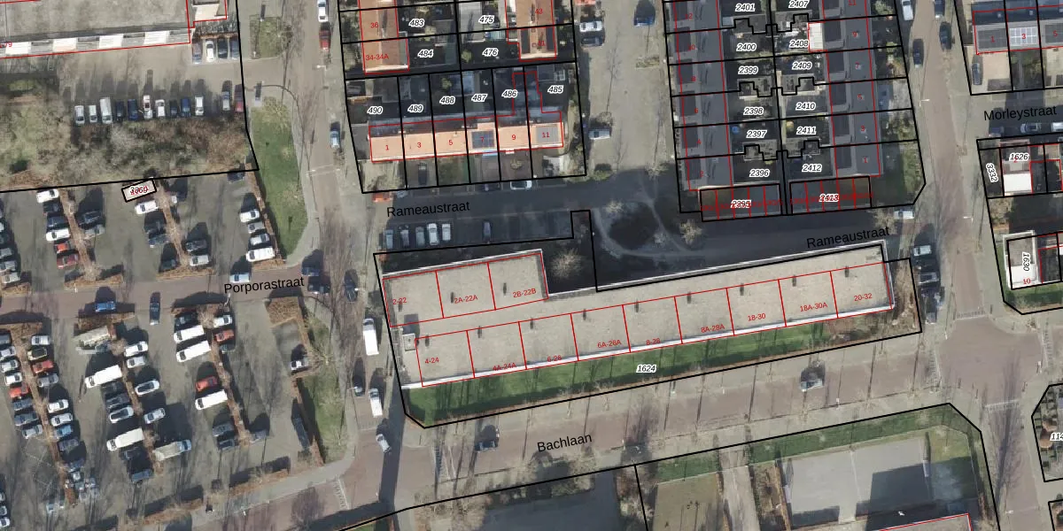 Het perceel waarop Telemannstraat 22-B staat heeft een oppervlakte van 2368 m². Dit is een zeer groot perceel. De perceeloppervlakte wordt geregistreerd door het Kadaster. Gedetailleerde informatie over de maten van dit perceel kunt u vinden in het rapport Kadastrale kaart met maatvoering van Telemannstraat 22-B.