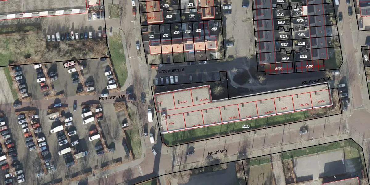 Het perceel waarop Telemannstraat 22-A staat heeft een oppervlakte van 2368 m². Dit is een zeer groot perceel. De perceeloppervlakte wordt geregistreerd door het Kadaster. Gedetailleerde informatie over de maten van dit perceel kunt u vinden in het rapport Kadastrale kaart met maatvoering van Telemannstraat 22-A.