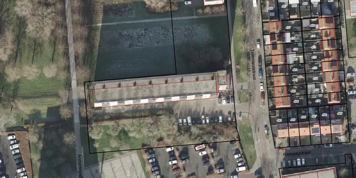Het perceel waarop Telemannstraat 53 staat heeft een oppervlakte van 1,5 ha. Dit is een zeer groot perceel. De perceeloppervlakte wordt geregistreerd door het Kadaster. Gedetailleerde informatie over de maten van dit perceel kunt u vinden in het rapport Kadastrale kaart met maatvoering van Telemannstraat 53.