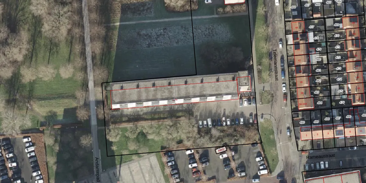 Het perceel waarop Telemannstraat 55 staat heeft een oppervlakte van 1,5 ha. Dit is een zeer groot perceel. De perceeloppervlakte wordt geregistreerd door het Kadaster. Gedetailleerde informatie over de maten van dit perceel kunt u vinden in het rapport Kadastrale kaart met maatvoering van Telemannstraat 55.