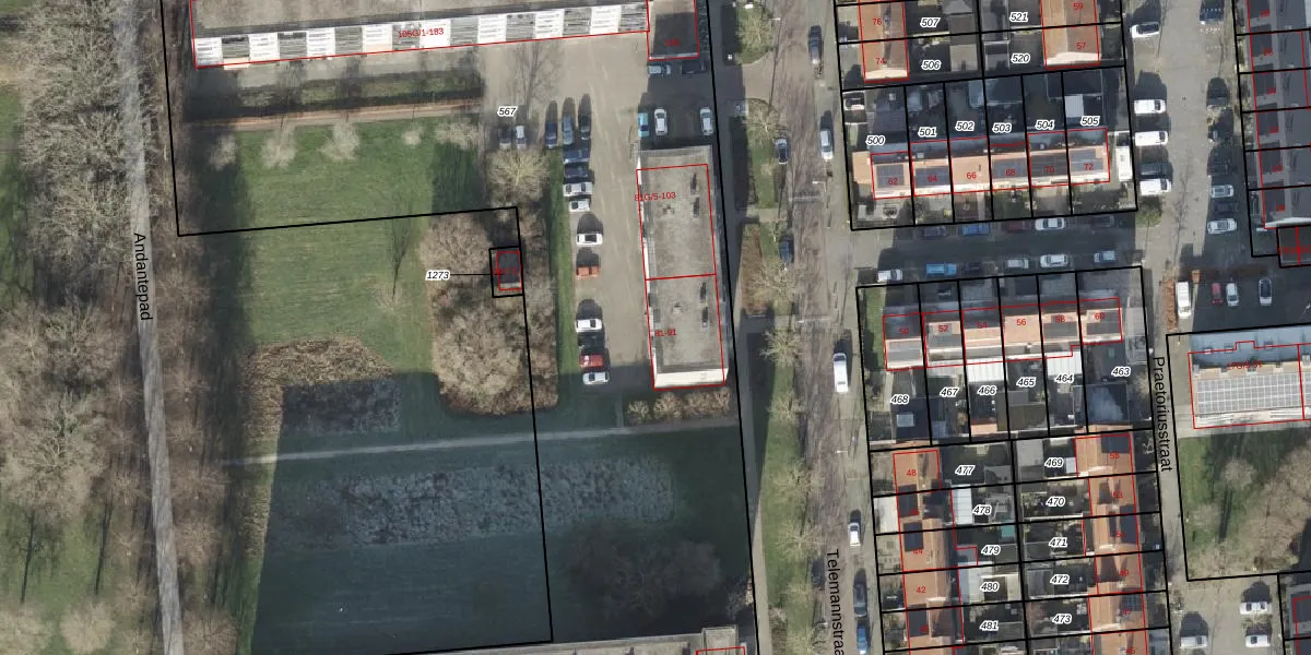 Het perceel waarop Telemannstraat 81-G-3 staat heeft een oppervlakte van 1,5 ha. Dit is een zeer groot perceel. De perceeloppervlakte wordt geregistreerd door het Kadaster. Gedetailleerde informatie over de maten van dit perceel kunt u vinden in het rapport Kadastrale kaart met maatvoering van Telemannstraat 81-G-3.