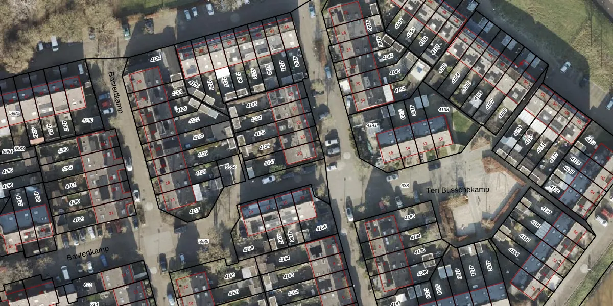 Het perceel waarop Ten Busschekamp 21 staat heeft een oppervlakte van 160 m². Dit is een middelgroot perceel. De perceeloppervlakte wordt geregistreerd door het Kadaster. Gedetailleerde informatie over de maten van dit perceel kunt u vinden in het rapport Kadastrale kaart met maatvoering van Ten Busschekamp 21.