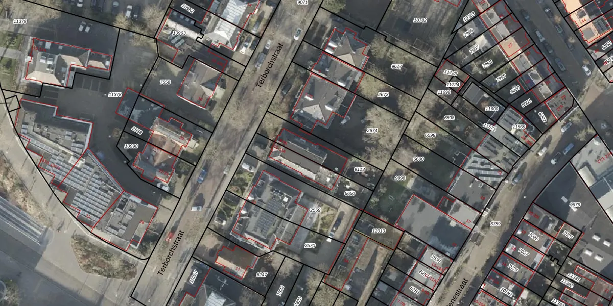 Het perceel waarop Terborchstraat 9-A staat heeft een oppervlakte van 320 m². Dit is een groot perceel. De perceeloppervlakte wordt geregistreerd door het Kadaster. Gedetailleerde informatie over de maten van dit perceel kunt u vinden in het rapport Kadastrale kaart met maatvoering van Terborchstraat 9-A.