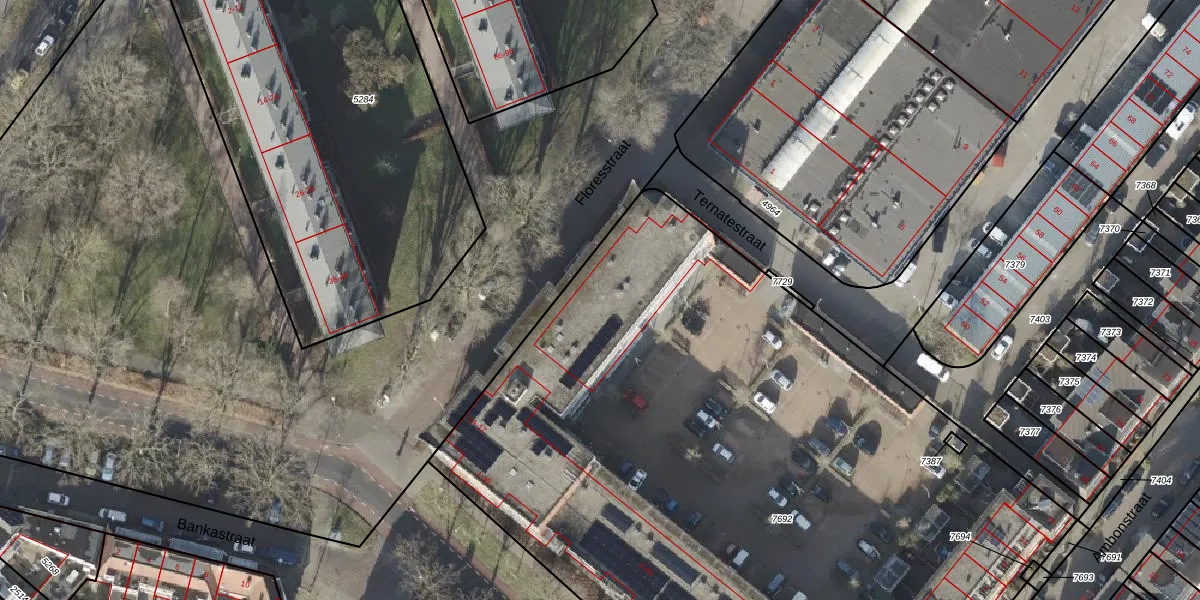 Het perceel waarop Ternatestraat 6 staat heeft een oppervlakte van 5651 m². Dit is een zeer groot perceel. De perceeloppervlakte wordt geregistreerd door het Kadaster. Gedetailleerde informatie over de maten van dit perceel kunt u vinden in het rapport Kadastrale kaart met maatvoering van Ternatestraat 6.