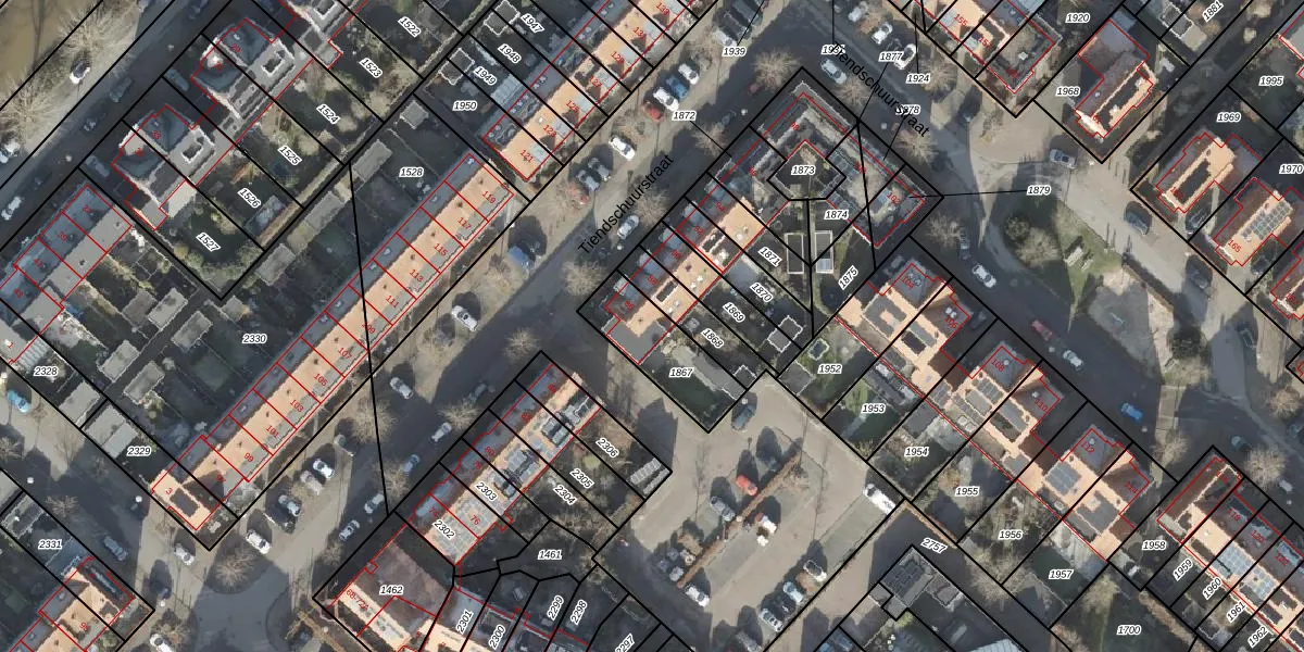Het perceel waarop Tiendschuurstraat 86 staat heeft een oppervlakte van 242 m². Dit is een middelgroot perceel. De perceeloppervlakte wordt geregistreerd door het Kadaster. Gedetailleerde informatie over de maten van dit perceel kunt u vinden in het rapport Kadastrale kaart met maatvoering van Tiendschuurstraat 86.