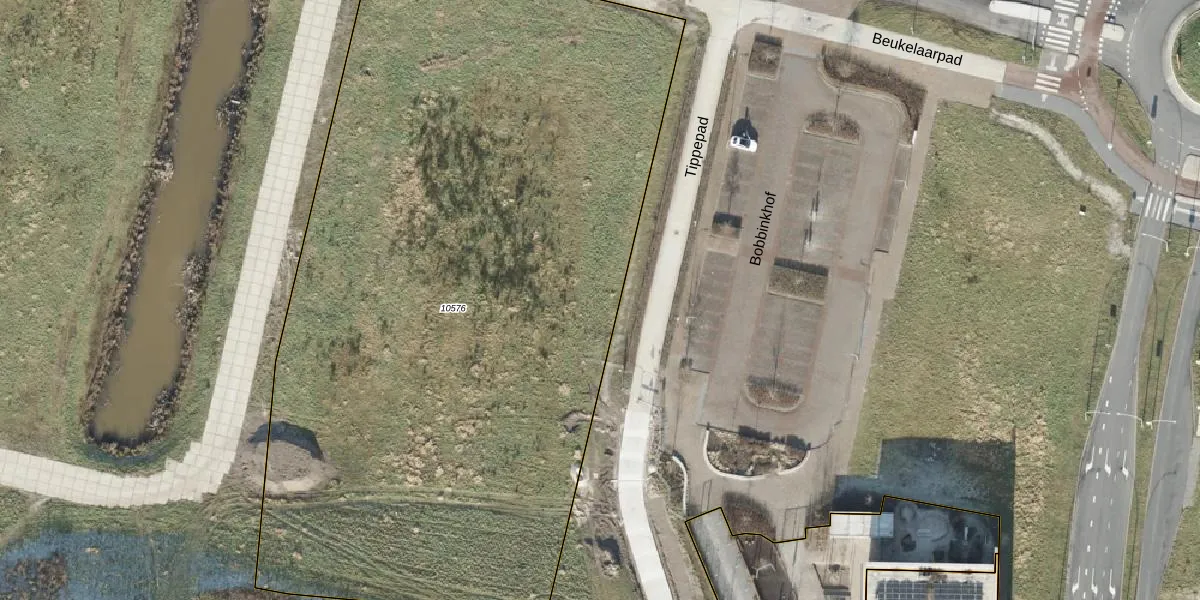 Het perceel waarop Tippepad 14 staat heeft een oppervlakte van 5581 m². Dit is een zeer groot perceel. De perceeloppervlakte wordt geregistreerd door het Kadaster. Gedetailleerde informatie over de maten van dit perceel kunt u vinden in het rapport Kadastrale kaart met maatvoering van Tippepad 14.