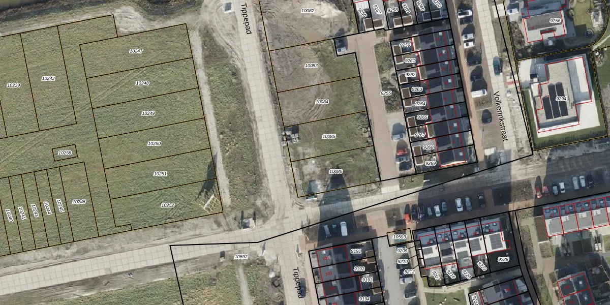 Het perceel waarop Tippepad 42 staat heeft een oppervlakte van 320 m². Dit is een groot perceel. De perceeloppervlakte wordt geregistreerd door het Kadaster. Gedetailleerde informatie over de maten van dit perceel kunt u vinden in het rapport Kadastrale kaart met maatvoering van Tippepad 42.
