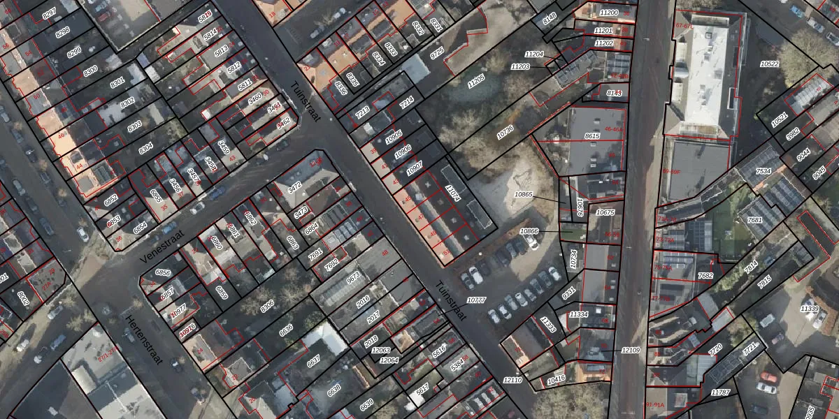 Het perceel waarop Tuinstraat 47 staat heeft een oppervlakte van 326 m². Dit is een groot perceel. De perceeloppervlakte wordt geregistreerd door het Kadaster. Gedetailleerde informatie over de maten van dit perceel kunt u vinden in het rapport Kadastrale kaart met maatvoering van Tuinstraat 47.