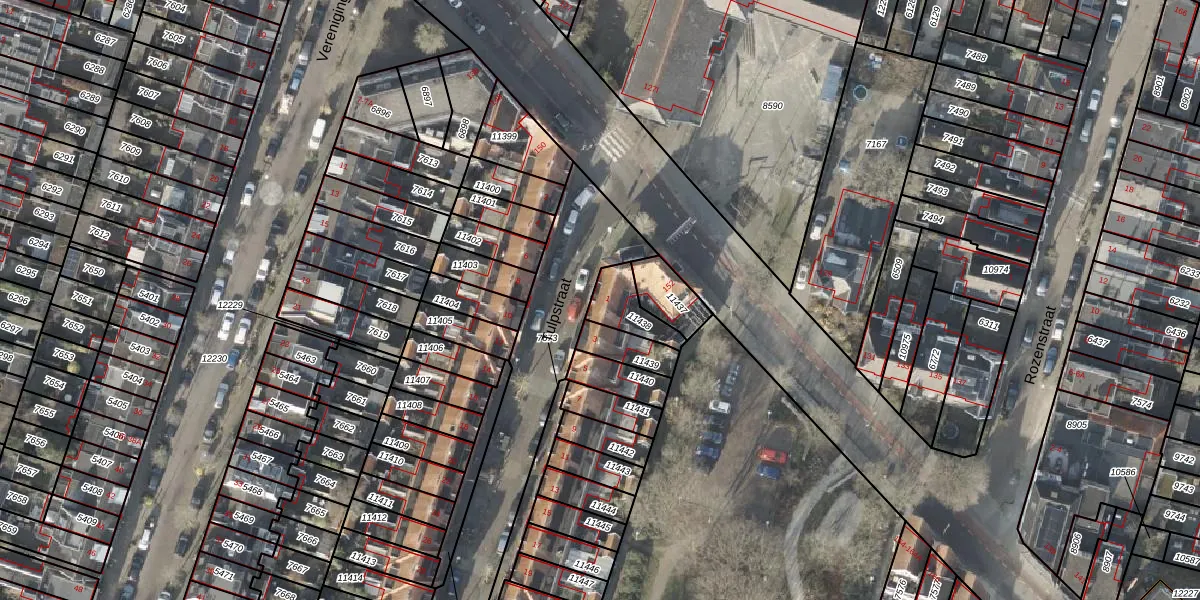Gebruik de zoekbalk of klik op een perceel voor informatie over de adressen binnen dit perceel.